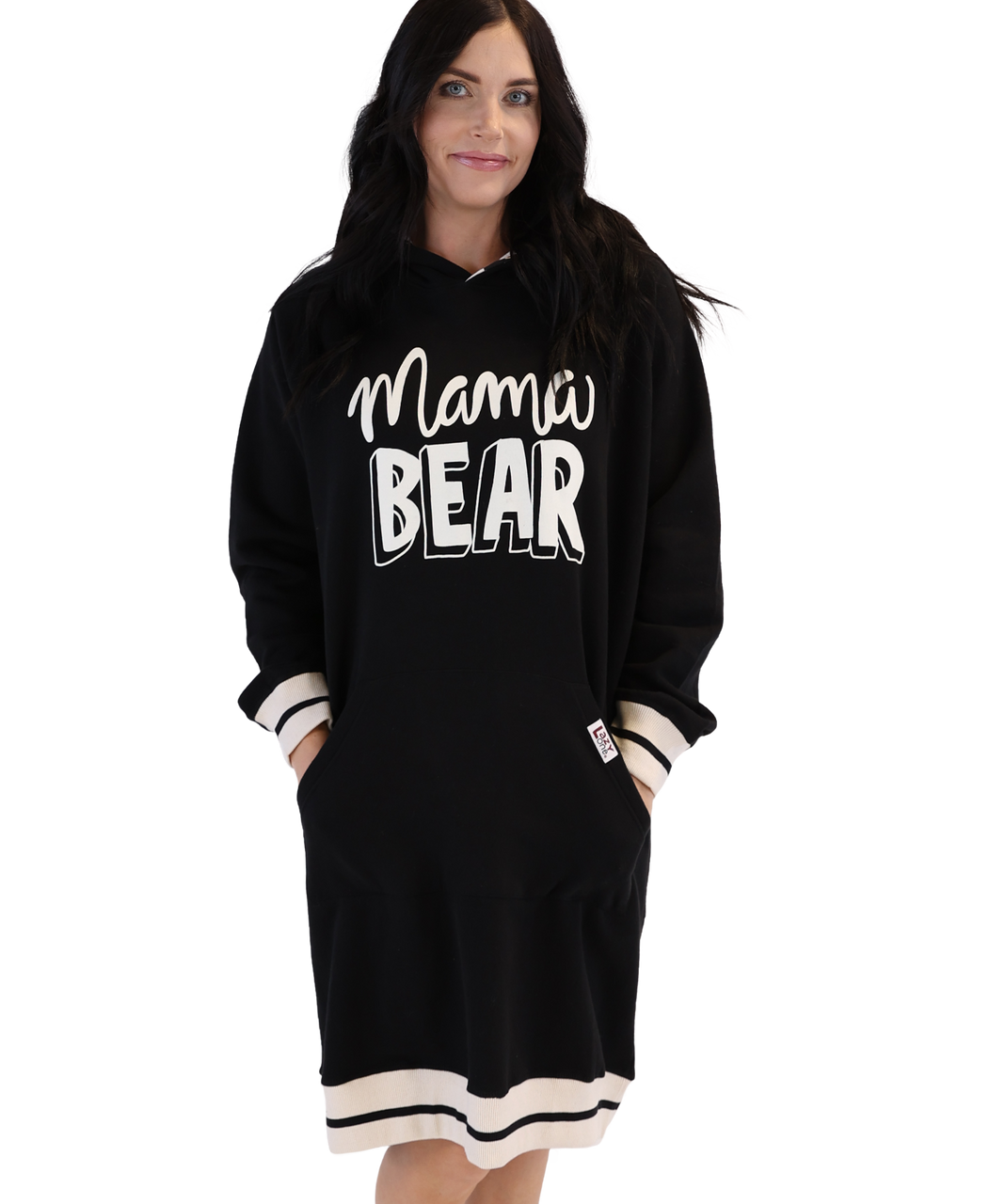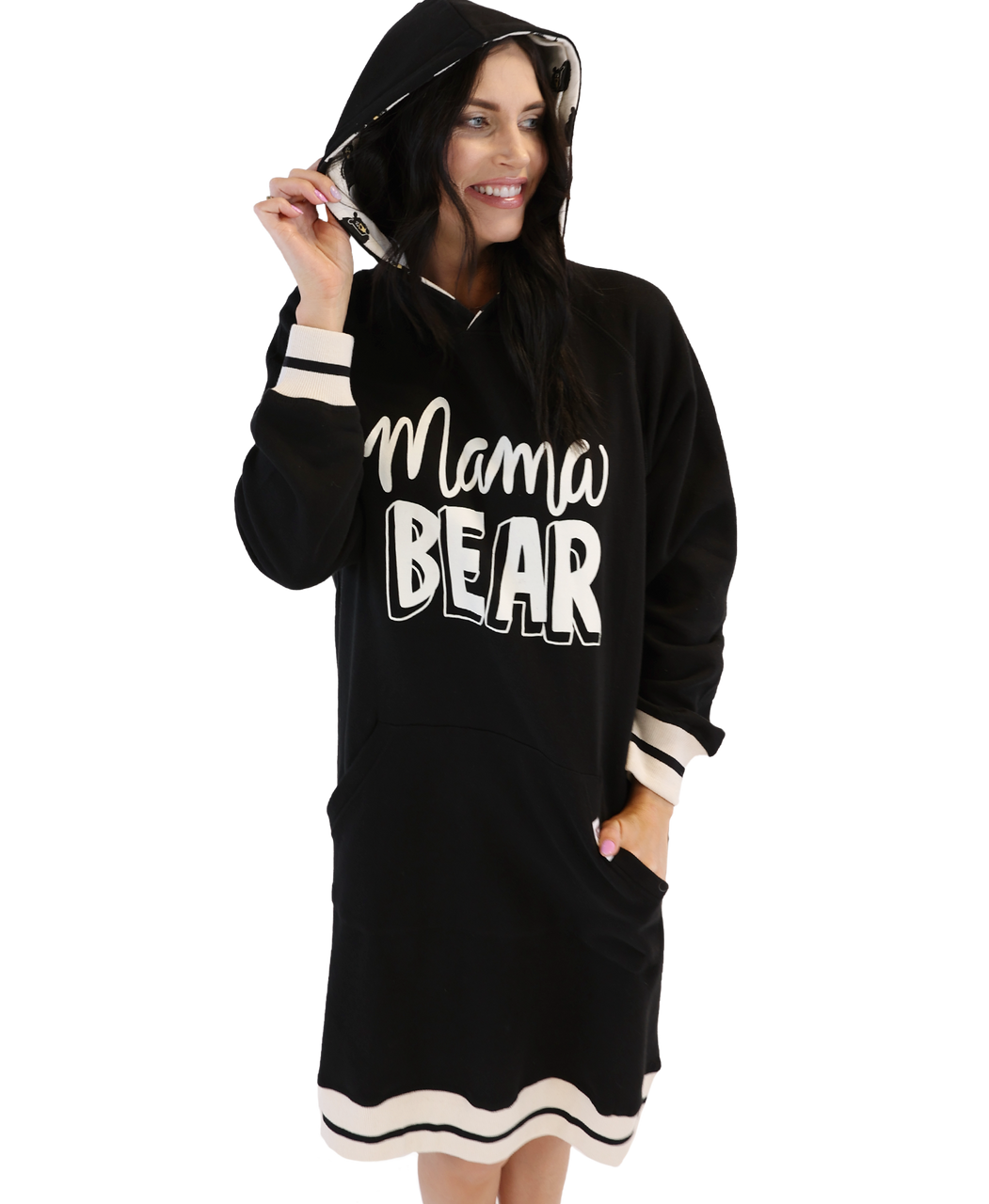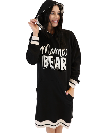 Every Mama bear deserves to be comfy and cozy! Our Mama Bear sleep hoodie will bring all the comfort you need to be the best Mama bear ever. This sleep hoodie features our classic mama bear design with our all over family bear design in the hood. Our Sleep Hoodies are longer than your average hoodie, making them perfect for snuggling on the couch on a cold day. They also feature thumb holes and who doesn't love those!! Made with 80% cotton and 20% polyester giving you the right amount of comfort and warmth.