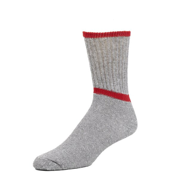 6 Pair Men's Grey Crew Boot Sock with Red Stripes