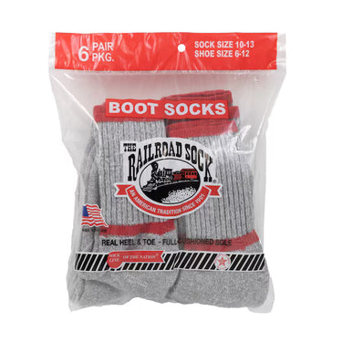 Railroad Sock 6-Pack Size Crew Boot Cushion Sock Size 10-13