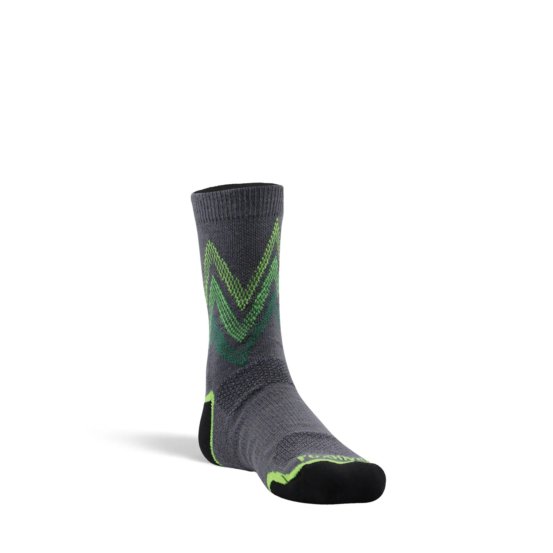 Introducing the Kid's Mountain Hiker Lightweight Crew Hiking Sock. Made with eco-coolmax® technology, this sock is perfect for keeping your young hiker's feet dry and cool while providing the necessary support for a full day of trekking. Lightweight, breathable, and quick-drying - a must-have for any adventure!