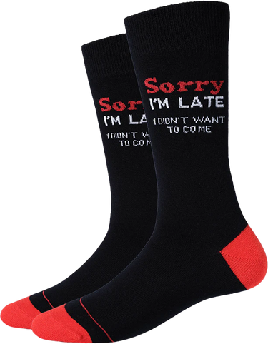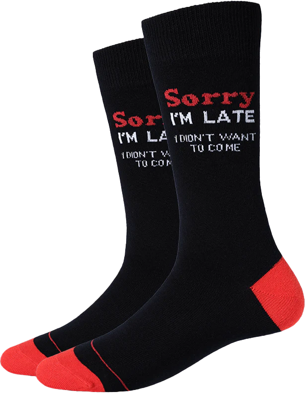 Step into the world of fashionable tardiness with Sorry I'm Late Socks by Sock Harbor. These socks are so stylish, they'll make you want to be fashionably late to every event - just don't blame us if you miss the party!