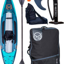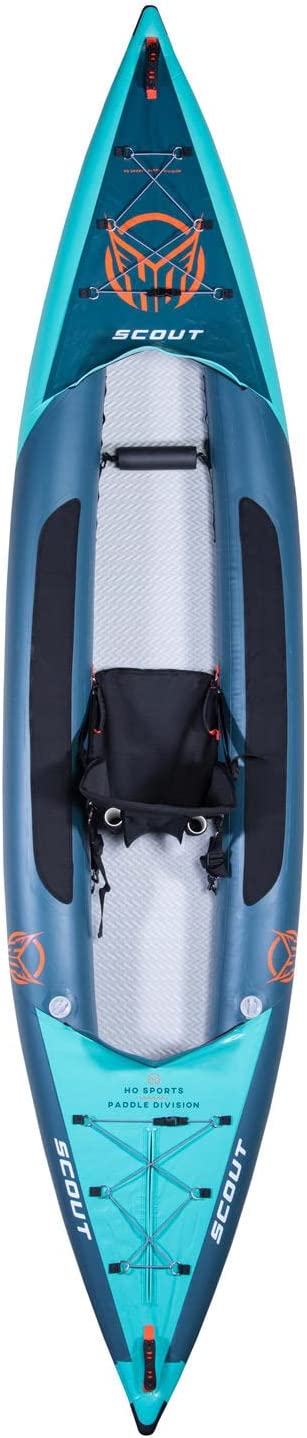 With its blend of a rugged lightweight design and functional features and accessories, the Scout iKayak from HO Sports is the perfect inflatable kayak for single or multi-day adventures. The Scout’s high-performance design is bolstered by its ArmorShark reinforced side bladders, reinforced for added strength and rigidity. The Ultra-Reinforced Bow and Stern extend the kayaks life for even the most hard charging adventures. It’s waterproof Skin protect from water absorption and speed up dry time. It’s fully inflatable, making it super compact for simple storage and transport. The Scout’s 3 inflation chambers make inflation/deflation a snap while the RIGID Drop-Stitch floor won’t bend or fold like some inflatable kayaks. With 2 bungee storage zones and an open top design, you will have ample room for all your gear. The Scout comes with an Atlas adjustable 2-piece paddle, an ergonomic high-back seat with storage pocket and built-in fishing rod holders, a hand pump and backpack. Start your expedition with the Scout iKayak from HO Sports.