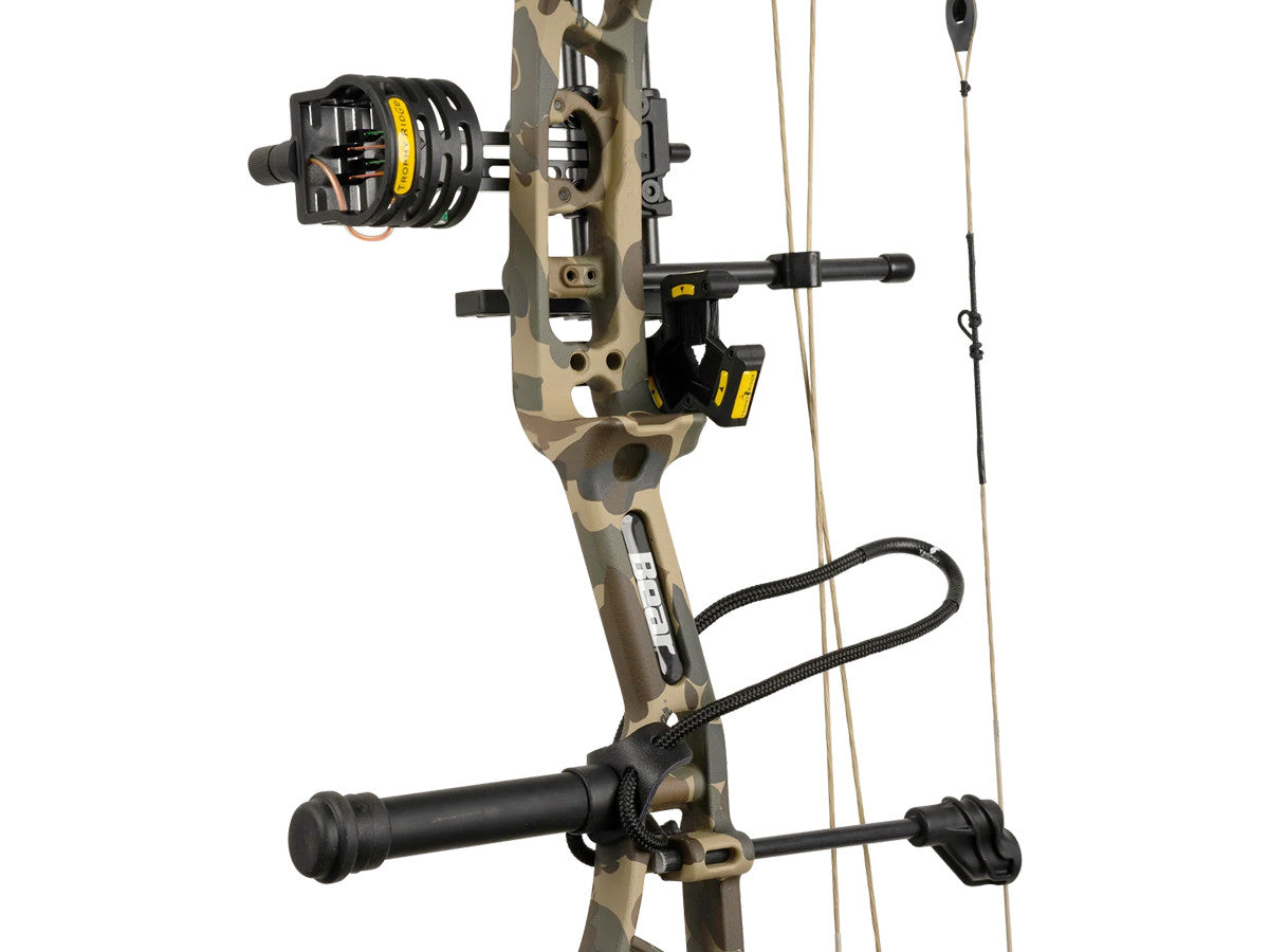 This compound bow has a draw length of 23.5" to 30.5" and is available with a draw weight range of either 45-60 pounds, and the Ready to Hunt Package contains a Whisker Biscuit V arrow rest, a peep sight, a 5-Spot Quiver, a Trophy Ridge 4-pin sight, a D-loop, and a 6" stabilizer, meaning it can be used right out of the box. To get a bow that hits the mark shot after shot, buy the Bear Archery Species EV Compound Bow at Pyramyd AIR now.