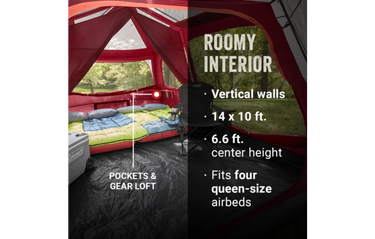 - Wide door makes it easier to move airbeds, sleeping bags, and other gear in and out of the tent