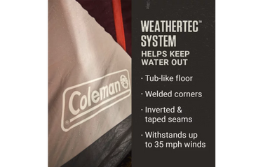 - WeatherTec™ system's welded corners, inverted seams and taped seams on rainfly and tent body help keep water from getting in; strong frame has been tested to withstand up to 35 mph winds