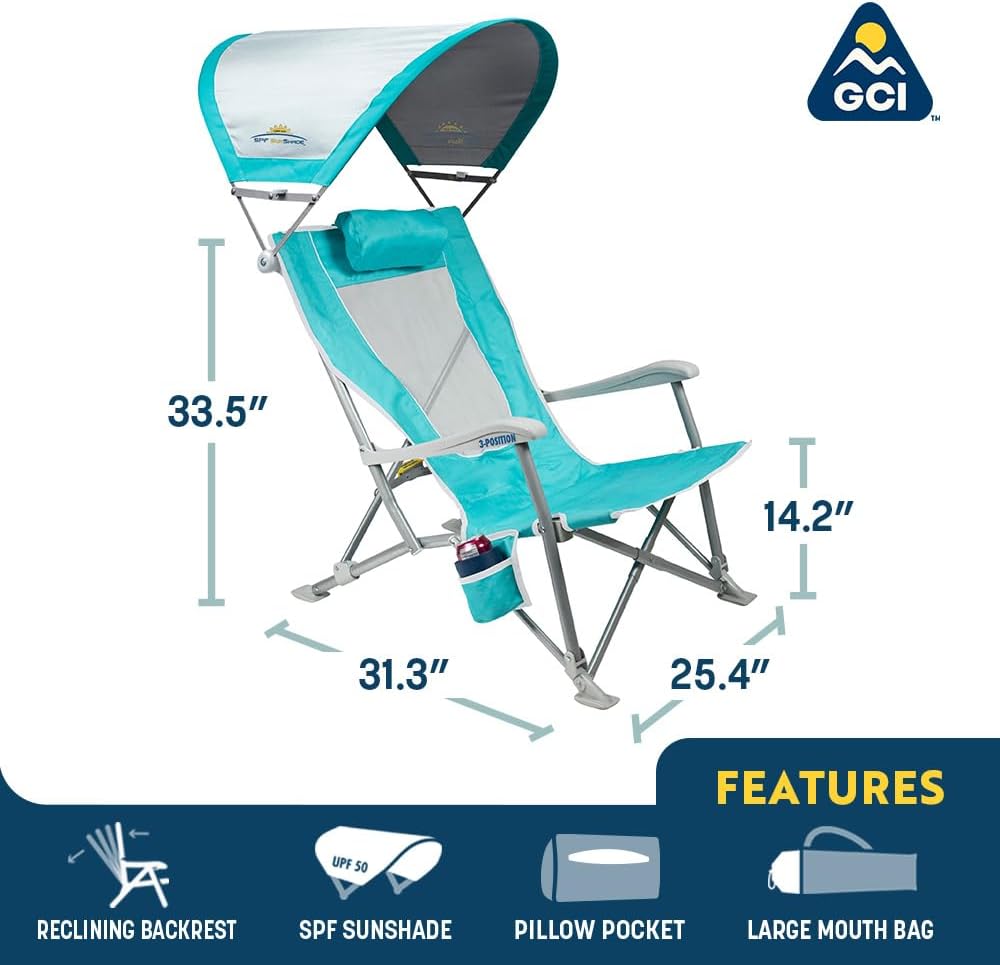 SunShade Big Surf 4-Level Folding Beach Chair with Sun Shade (Seafoam Green)