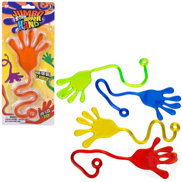 Toss and swing these Jumbo Sticky Hands to see them stick to most surfaces. Assorted colors.