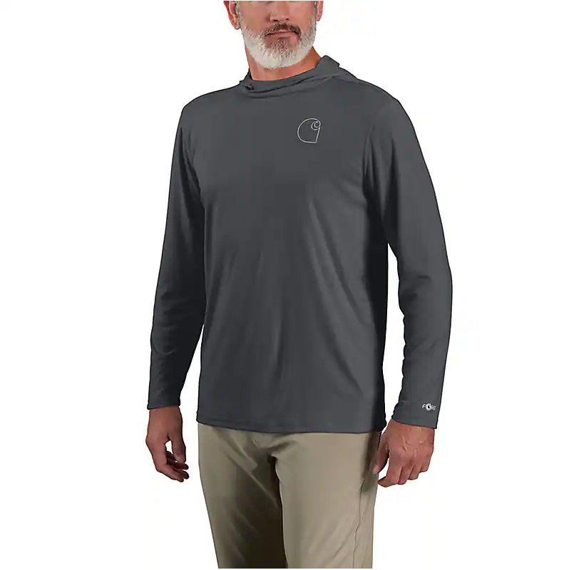 Carhartt Force Sun Defender™ Lightweight Long-Sleeve Hooded Logo Graphic T-Shirt (Steel) Size L