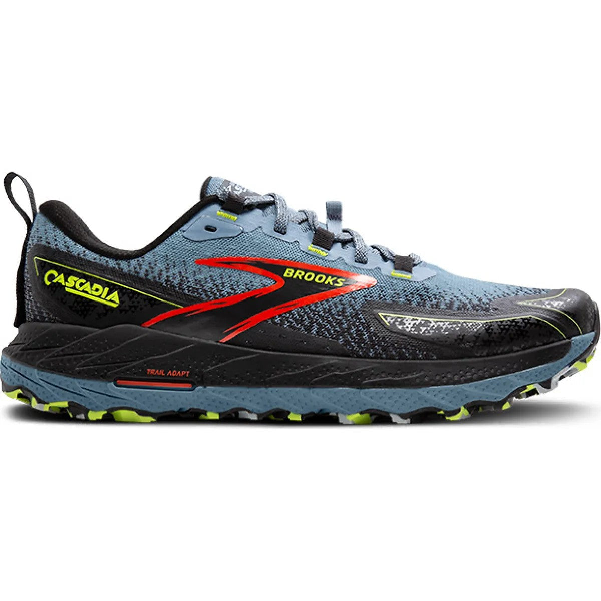 Description:   Adapt to the ever-changing landscape in the Brooks Cascadia 18! This fan-favorite trail runner provides all-terrain comfort.Its Trail Adapt System combines an integrated midsole, rock plate and outsole pods for support on any surface. Dominate wet and dry surfaces on the sticky TrailTack green rubber outsole. Enjoy soft and light strides under the DNA LOFT v2 foam midsole.With reliable traction and durable protection, the Brooks Cascadia 18 is ready to tackle the trail! What's New? Increased recycled material lowers carbon emissions, making the Brooks Cascadia 18 a certified carbon-neutral product. Updated mesh features protective overlays in high-wear areas. Who's it for? Runners and hikers who want a durable, stable and grippy trail shoe. Aggressive trail runners who need shoes for uneven surfaces and inclement weather. Key Features: Adaptable stability: Trail Adapt System uses an integrated midsole, rock plate and zonal outsole pods for a stable ride over any surface. Comfort and security: DNA LOFT v2 midsole provides soft cushioning over any terrain. Trail Tack Green outsole rubber provides traction on wet and dry surfaces. Protective upper: Breathable mesh dries quickly, while overlays add protection in high-wear areas. PrintDyed upper saves 66% of the energy and 75% of the water required for the traditional dye process. Articulated Ballistic Rock Shield protects the foot without limiting flexibility TPU Mudguard and toecap block debris 4.5mm lug height.