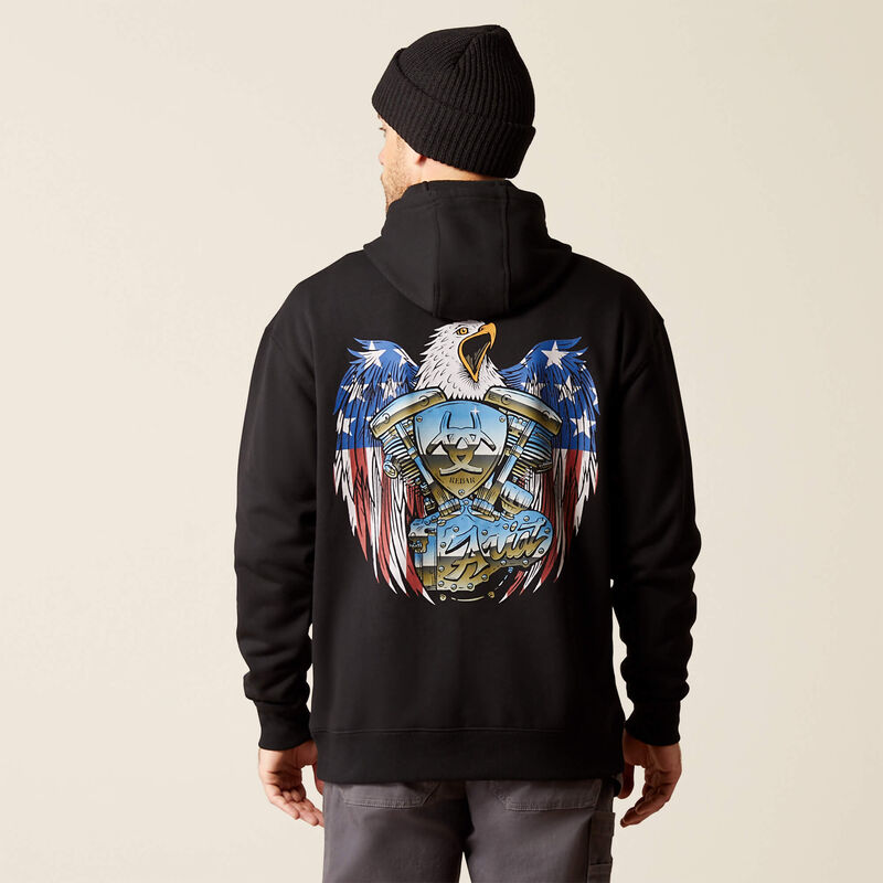 Ariat Rebar Workman Moto Eagle Hoodie (Black) Size L