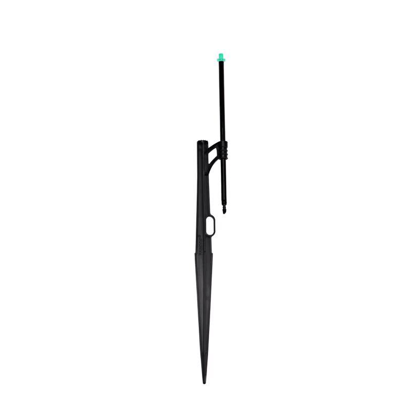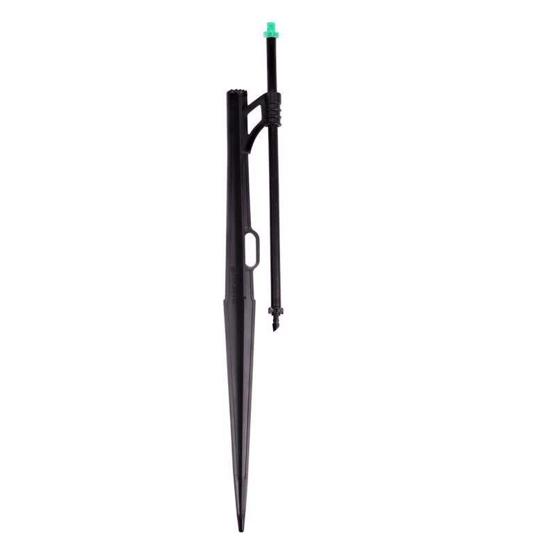 Use the Winged Jet Assembly to spray gardens, flower beds, ground cover, and hillsides. The jet sprayer and 8 in. adjustable riser with 1/4 in. barbed inlet come preassembled on a 13 in. stake so it's ready to install-insert the stake, position the riser to preferred height, and connect 1/4 in. supply tubing to the inlet. Fan spray emits water in a quarter-circle pattern at up to 21.8 GPH and radius of up to 6.0 ft. (at 15-50 PSI). The winged jet, like the winged nut, features thumb grips to make it easy to remove for cleaning. Assembly is made of polyethylene treated with UV inhibitors.