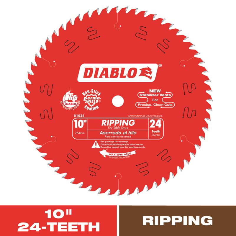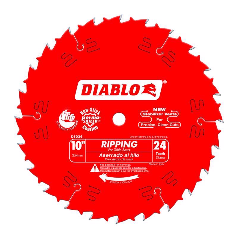Home Shop Tools Diablo 10 in. D X 5/8 in. TiCo Hi-Density Carbide Ripping Saw Blade 24 teeth 1 pk