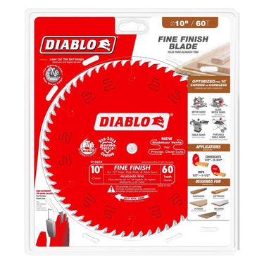 Fine finish blades let trim crews get the most out of sliding or 'chop' style miter saws, as well as jobsite or workshop table saws. The special cutting geometry and high tooth count produce extremely smooth cuts while minimizing 'grabbing' or blowout. Diablo's particular blade is the ideal choice for trim carpenters because it leaves a smooth surface that requires little to no sanding. It's ideal for crosscutting oak, pine, melamine, plywood and molding.