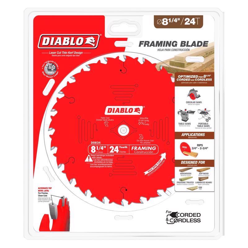 Home Shop Tools Diablo 8-1/4 in. D X 5/8 in. TiCo Hi-Density Carbide Framing Blade 24 teeth 1 pk