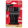 The Milwaukee universal fit Open-Lok HCS Japanese tooth pro-curve hardwood blades for oscillating multi-tools are made from premium high carbon steel and feature precision triple-ground japanese teeth for up to 2X faster cuts than the previous generation of high carbon steel blades. The japanese tooth hardwood blades have a pro-curve cutting edge for greater control and accuracy while cutting. The combination of japanese teeth and pro-curve cutting edge make this blade the optimal solution for precise cuts with a smooth finish in hardwood, wood, PVC, drywall, and other soft materials.