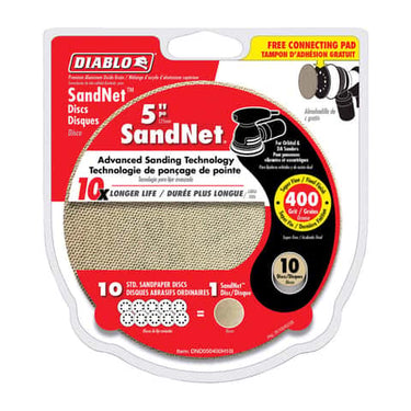Diablo SandNet 5 in. Aluminum Oxide Hook and Lock Sanding Disc 400 Grit Super Fine 10 pk
