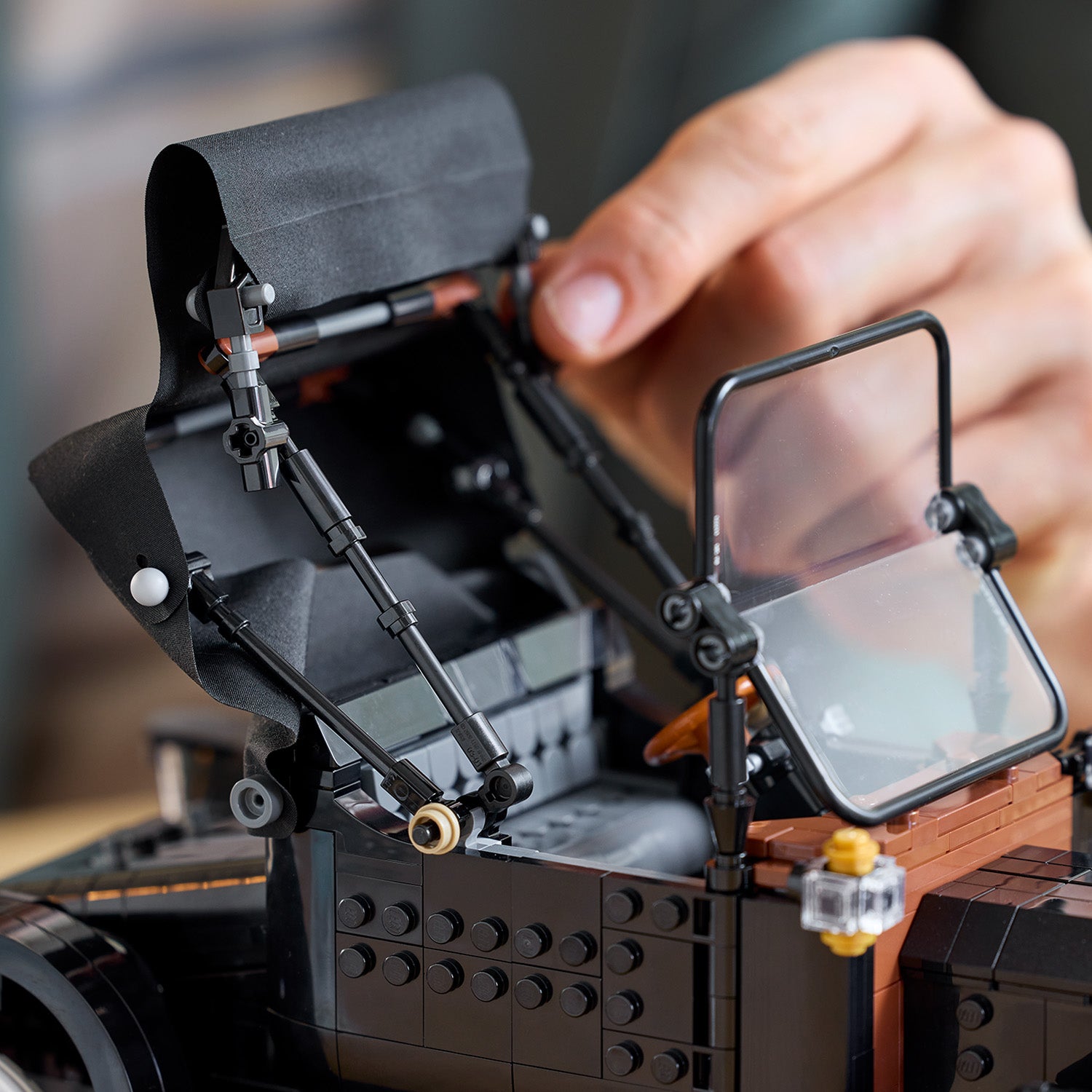 • VINTAGE CAR MODEL – Recreate the iconic 1910s automobile with gleaming black bodywork, golden accents, a foldback fabric roof and tall spoked rims with slim white rubber tires