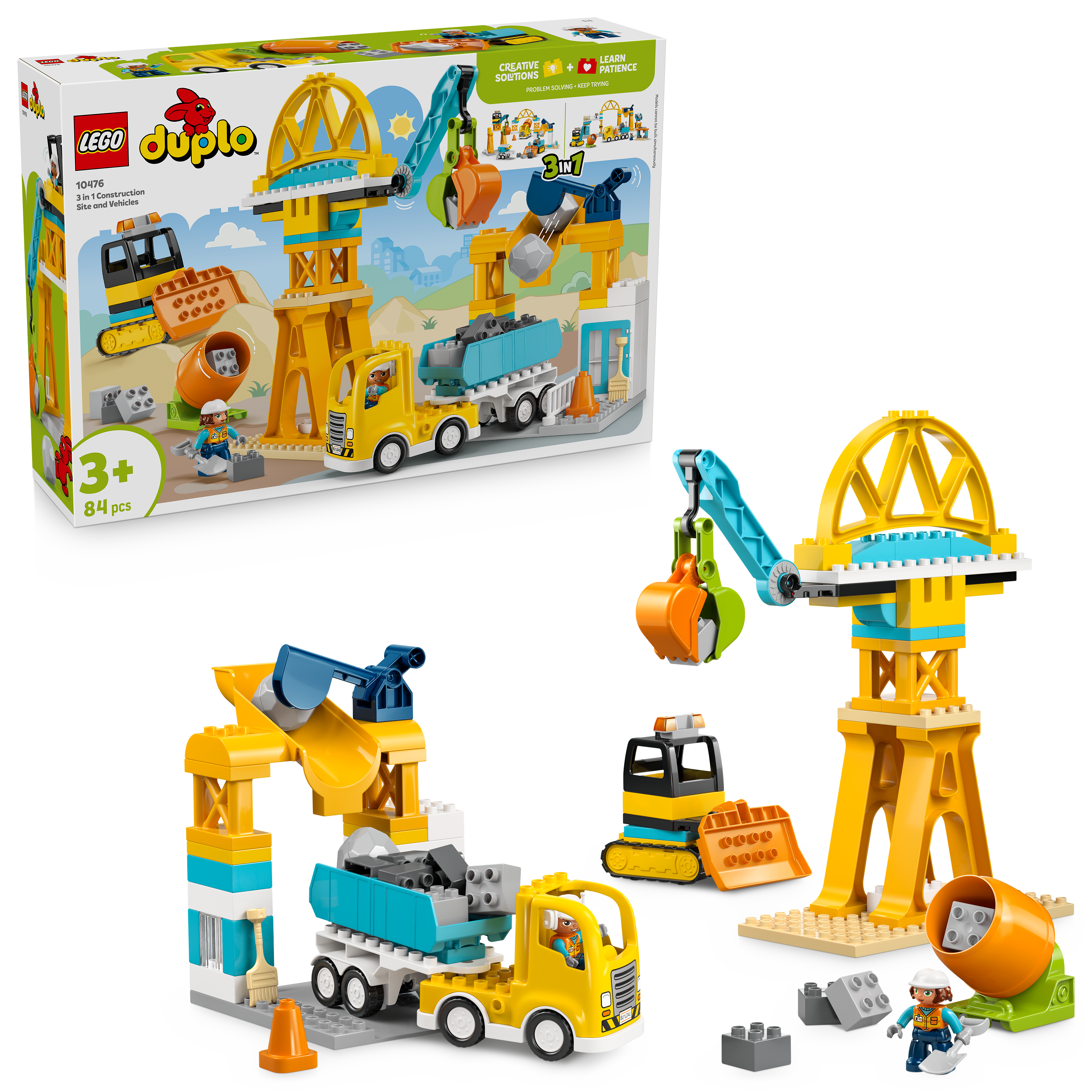 • LARGE CONSTRUCTION TOY FOR TODDLERS – This 3 in 1 Construction Site and Vehicles (10476) set includes 2 figures and 84 bricks to make lots of LEGO® DUPLO® Town truck toys and building options