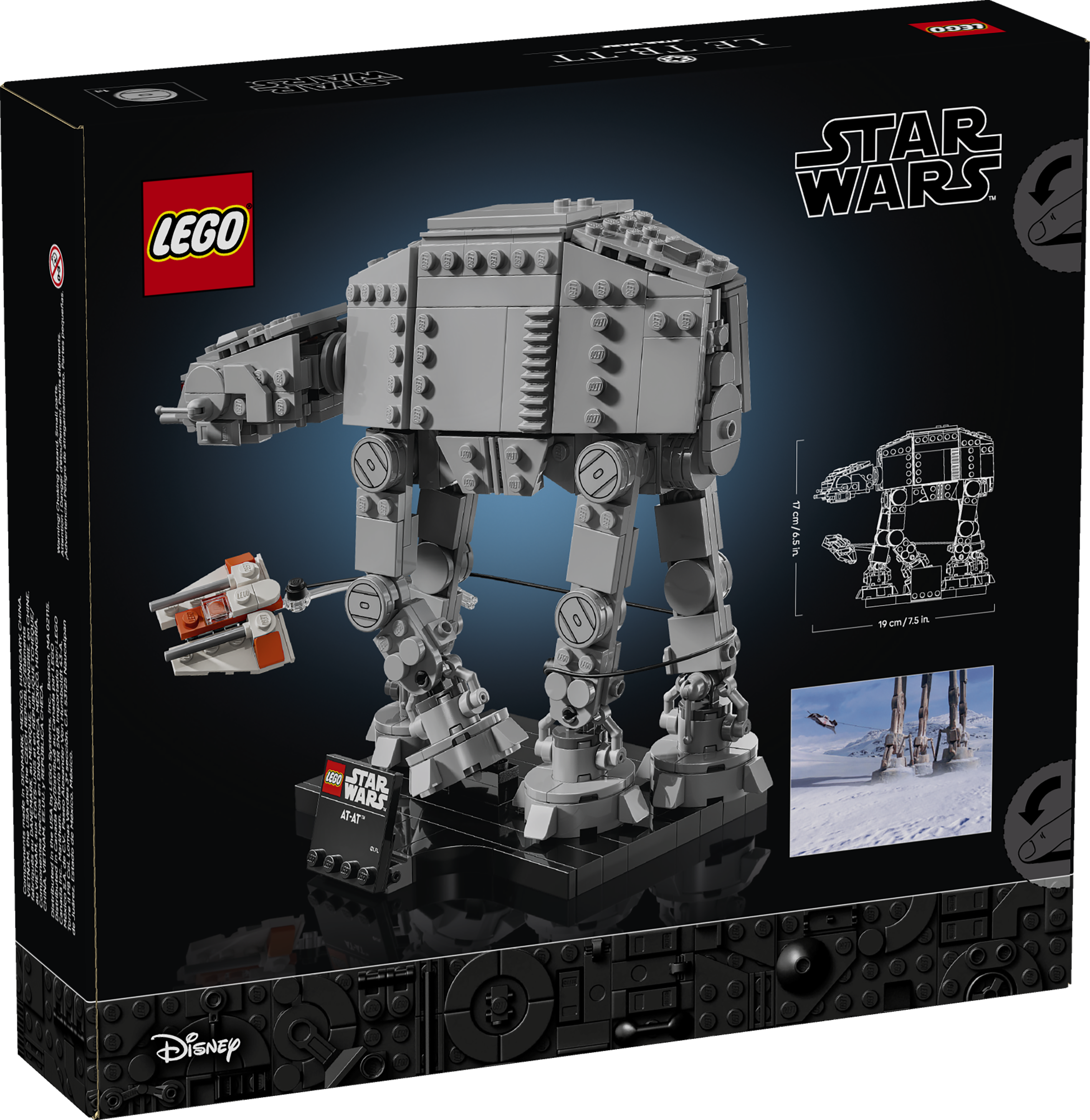 - DIMENSIONS – The AT-AT in this 525-piece set measures over 6.5 in. (17 cm) high, 7.5 in. (19 cm) long and 4.5 in. (11 cm) wide and makes an eye-catching desk decoration