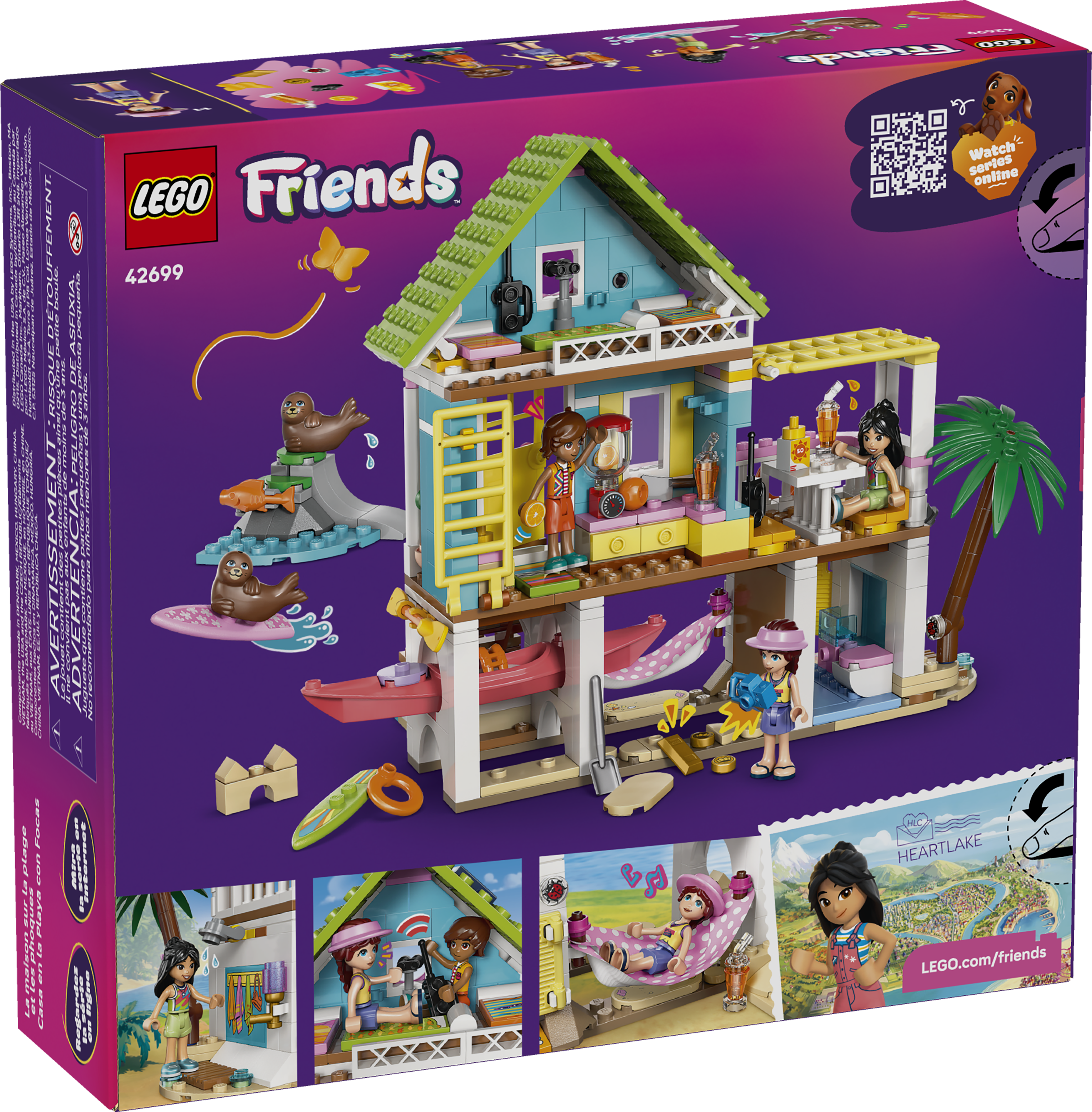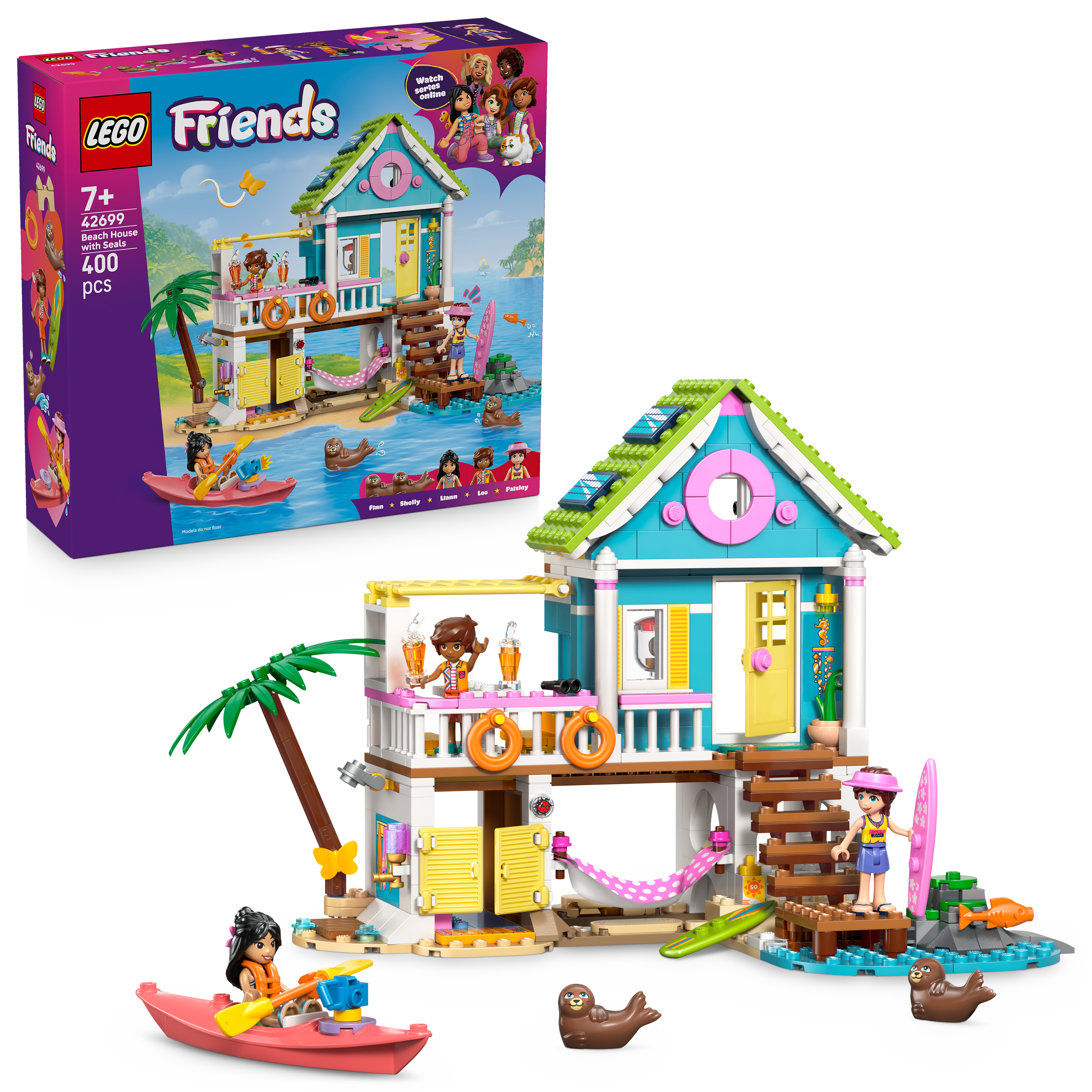 - 3 LEGO® FRIENDS CHARACTERS – The LEGO® Friends Beach House with Seals (42699) set includes Leo, Liann and Paisley minidolls plus 2 toy animal figures to inspire make-believe play
