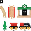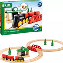 33028 Classic Figure 8 Set includes 22 pieces; 1x Engine, 2x Wagons, 1x Station, 1x Crossing Bridge, 14x Track, 3x Trees.