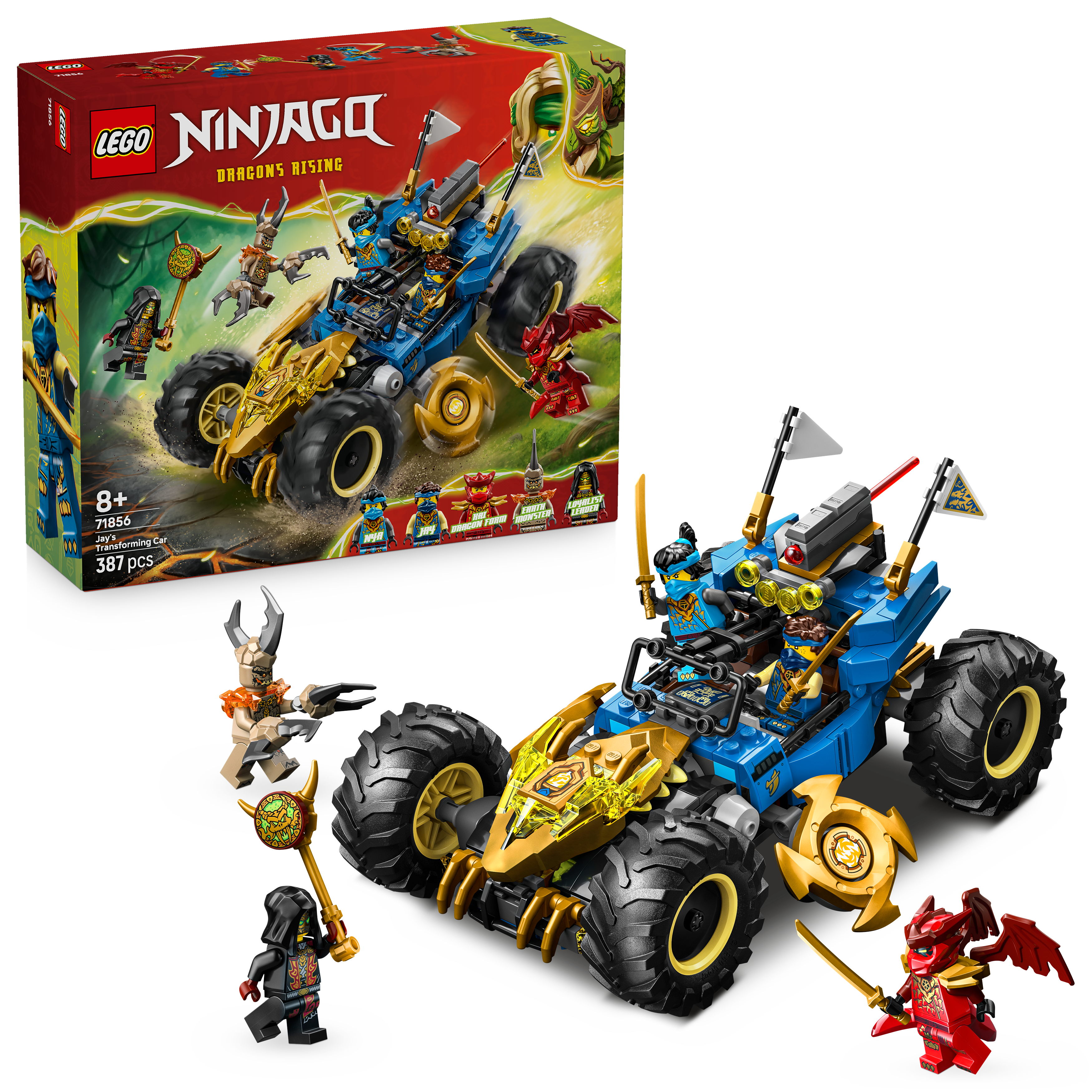 - CAR RACING TOY FOR KIDS – Jay’s Transforming Car (71856) building toy lets boys and girls ages 8 and up play out fast-paced action from season 4 of the NINJAGO® Dragons Rising TV show