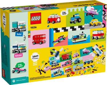 Treat vehicle-loving kids aged 5+ to the LEGO® Classic Creative Vehicles (11036) build-and-play set. This colorful car-building kit contains a mix of building bricks and pieces, plus simple guides to create a colorful set of endlessly rebuildable vehicles.