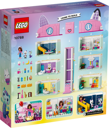 - 8-room playhouse – Fans of the DreamWorks Animation TV show aged 4+ can explore a home of their own with LEGO® Gabby’s Dollhouse (10788), featuring popular characters and authentic accessories