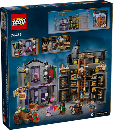 Open Ollivanders™ & Madam Malkin's Robes (76439) shops for magical playtime adventures with this LEGO® Harry Potter™ Diagon Alley™ toy building set for kids. A wizard gift toy for boys, girls and any Harry Potter fan aged 8 and up, it features highly detailed LEGO brick models of 2 iconic Diagon Alley shops, each packed with playful accessory elements. Ollivanders wand shop features a removable box on the shelves containing Harry Potter’s wand, wand racks, a ladder and a total of 26 wands. Madam Malkin’s Robes for All Occasions shop has mannequins, hats and cloak elements.