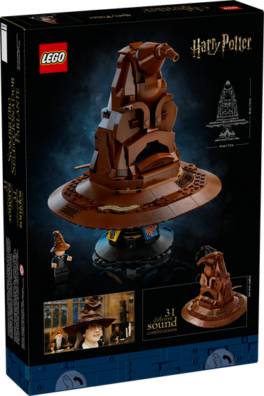 - Build, display and play – The LEGO® Harry Potter™ Talking Sorting Hat™ model measures over 9.5 in. (24 cm) high and 7.5 in. (19 cm) in diameter