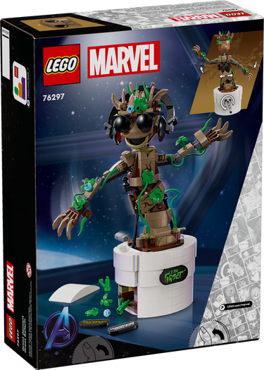 LEGO® Marvel Dancing Groot (76297) is a buildable Guardians of the Galaxy toy with an interactive dancing function. It makes a great gift for kids aged 10 and up who are fans of the Marvel character Groot, Super Heroes and buildable LEGO toys.