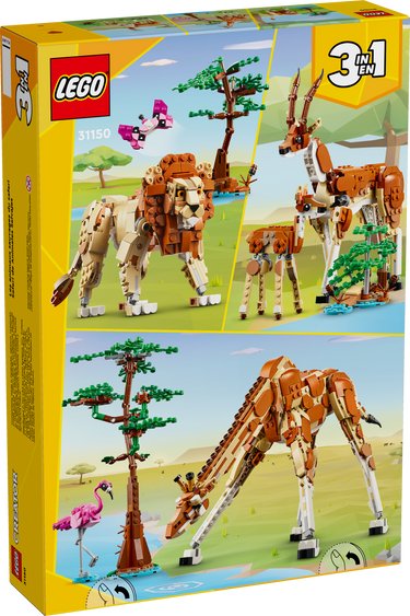 - 3 safari animals in 1 set including a lion toy – Girls and boys aged 9+ can build and rebuild 3 different models using the same bricks in this LEGO® Creator Wild Safari Animals 3in1 set