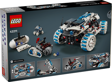 Launch kids’ imaginations beyond orbit with this exciting space toy for boys and girls aged 10 and up. Inspired by real-life Lunar Outpost® vehicles enabling humanity’s return to the Moon, this LEGO® Technic™ Lunar Outpost Moon Rover Space Vehicle (42211) comes with a Moon rover, mining rover and MAPP rover to inspire endless journeys of exploration. This set has lots of features to ignite creative storytelling. The main model is a futuristic all-terrain Moon rover with rocker suspension, 4-wheel steering, deployable solar panels and a rotating arm. Use the arm to lift the smaller mining rover and send it on a mission to retrieve the Moon regolith (lunar rock) elements. Store the rocks in the sample container then deploy the MAPP rover to gather more information about the Moon’s surface. This set makes a fun gift for boys and girls who enjoy science kits and robot toys or anyone with a passion for space travel and lunar exploration. Set contains 1,082 pieces.