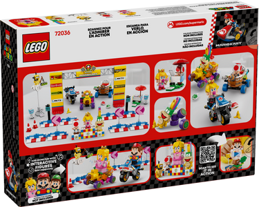 The set includes Baby Peach, Lakitu, Lemmy and Toad toy figures. Add a LEGO® Mario™, LEGO® Luigi™ or LEGO® Peach™ figure (from sets 71439, 71440 or 71441 – sold separately) for interactive play, including cool digital reactions when they drive the vehicles or are placed on the 2 Item Boxes or on the Action Tags of other builds.