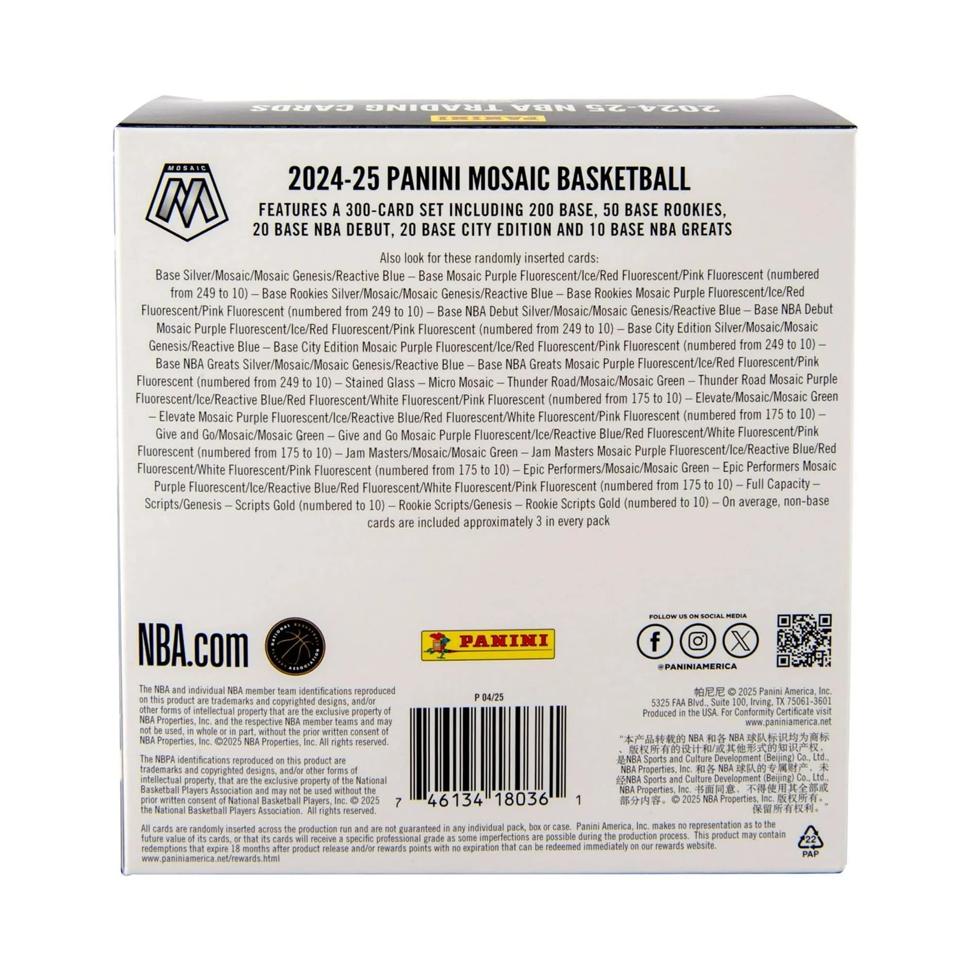 • NBA X PANINI: Celebrate your love of basketball with this NBA 2025 Panini Mosaic Basketball Mega Box.