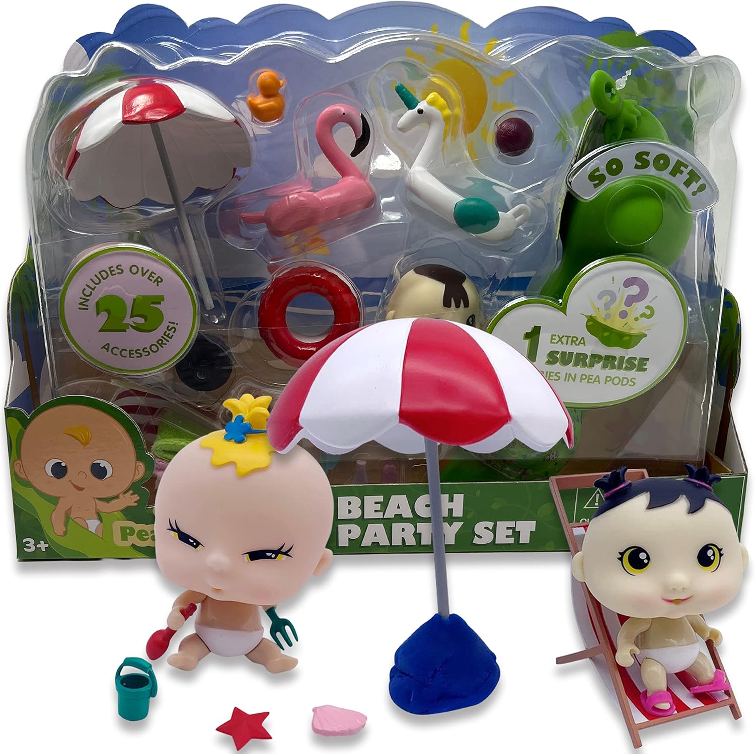 Hit the beach with the Pea Pod Beach Party set! This adorable kit brings tropical fun to playtime with colorful characters and fun accessories, perfect for sandcastle adventures.