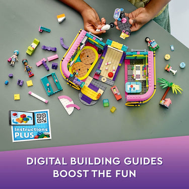 The mini-dolls ‘skate’ when kids turn the gear wheel. Kids can also play DJ – the model has a stand for a cell phone so youngsters can choose the music for the disco. As well as a paper guide, this set comes with Instructions PLUS. Available on the LEGO Building Instructions app, it includes zoom, ghost and rotate tools to help children understand the building process. It also lets them save their progress so they can jump back into the build anytime.