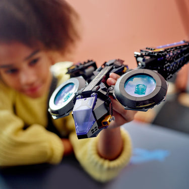 This impressive aircraft is an authentic recreation of Sunbird, the fantastic flying machine piloted by Shuri from Marvel Studios’ Black Panther: Wakanda Forever. This versatile and powerful-looking piece of Super-Hero equipment features 2 large engines on ball joints that kids can tilt and rotate to a variety of angles. Hinges allow the wings to be folded forwards and backwards. At the rear is storage for Shuri's fist weapons, and 2 stud shooters are mounted at the front. The set includes 4 minifigures – Shuri, Ironheart MK1, Nakia and Attuma – along with their cool weapons and accessories.