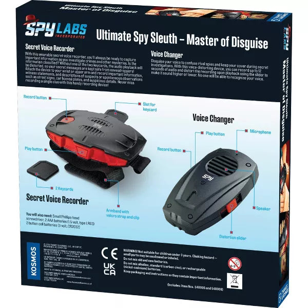 • The Ultimate Spy Sleuth - Master of Disguise includes two key spy tools in one package: the Spy Labs Secret Voice Recorder and the Spy Labs Voice Changer.