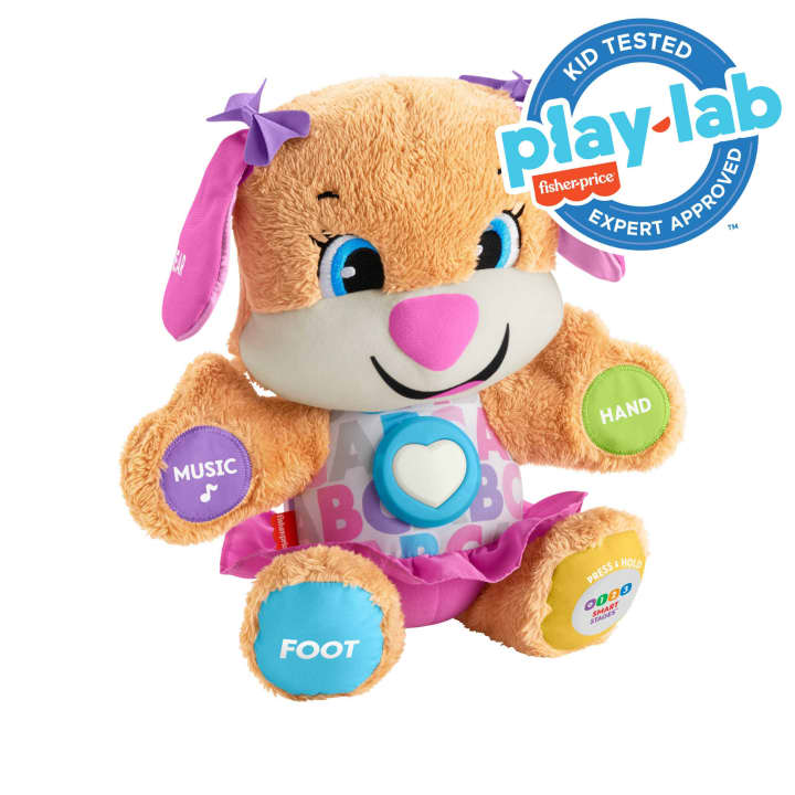 Sis comes with Smart Stages™ technology, so you can choose the level that's best for your child. There are a variety of songs, sounds and phrases within each of the three levels of play. And Sis's light-up, multicolor heart even twinkles along to the music!