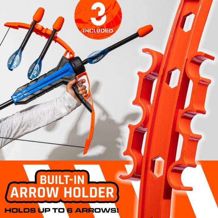 - BUILT IN ARROW HOLDER: This Bow & Arrow Blaster can hold up to 6 Rip Rockets so you have easy access to your Rip Rockets!