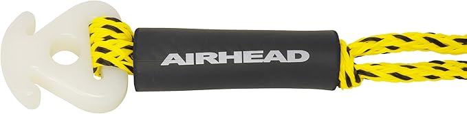 AIRHEAD Heavy Duty Tow Harness This heavy duty tow harness is perfect for pulling skiers, wake boarders and up to 4 rider towables. Simply clip it onto your boat with the 5,000-pound tensile strength hooks, and attach your ski or tube rope to the heavy duty Kwik-Connect. A 6” float keeps the Kwik-Connect floating on top, away from your propeller. 12 feet long to fit larger boats and pontoons. The hooks are rust resistant zinc galvanized carbon structural steel. Hook opening width 1/2”. Yellow / Red.