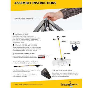 The Snowplow snow pushers are a premium brand and market leading snow removal tool preferred by contractors and enjoyed by homeowners everywhere it snows. The top quality construction is based on the high wearing, self sharpening UHMW polyethleyne blade for multiple years lifespan in the most abusive environments. The extra length fiberglass handle with D-grip provides ergonomic operator comfort.