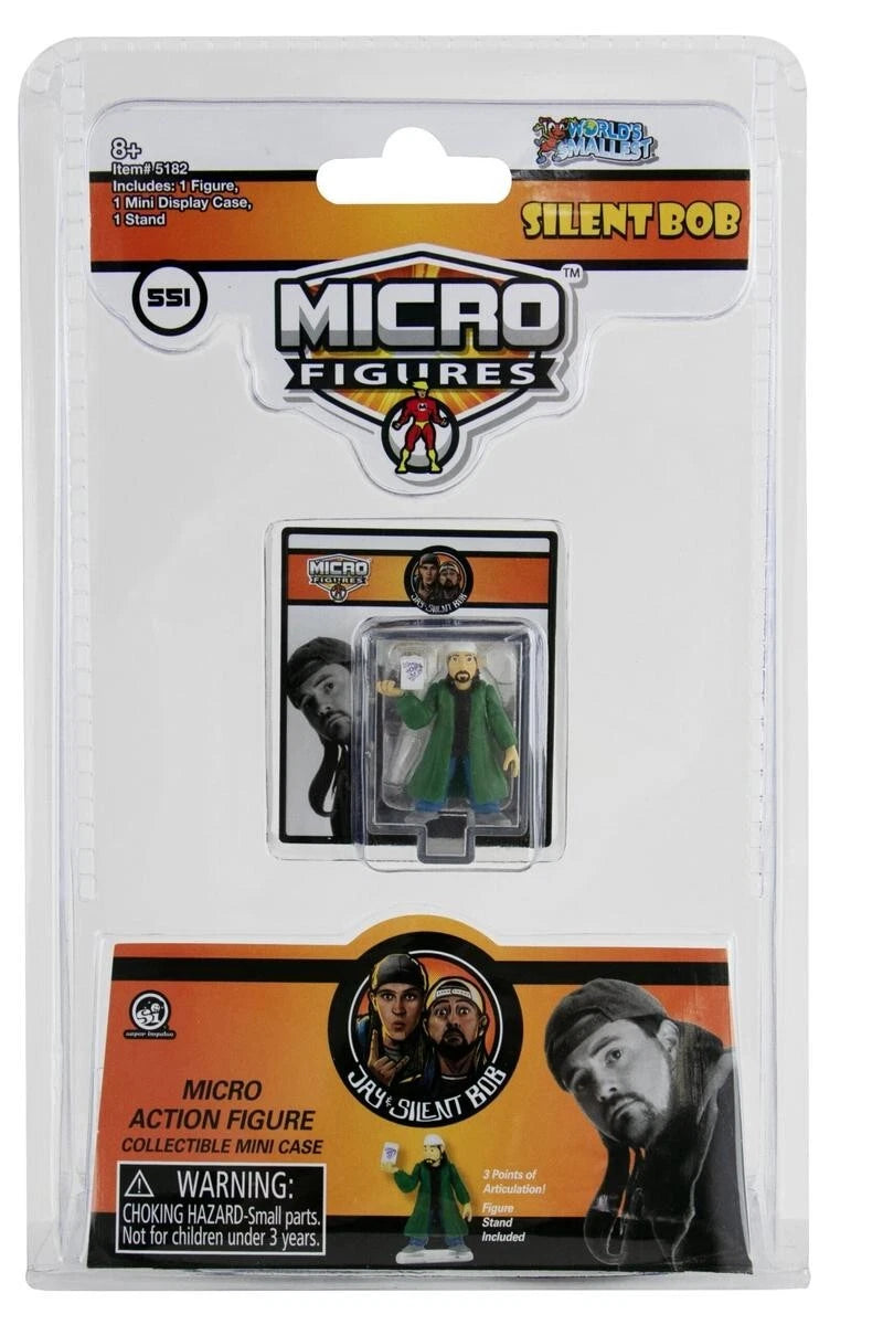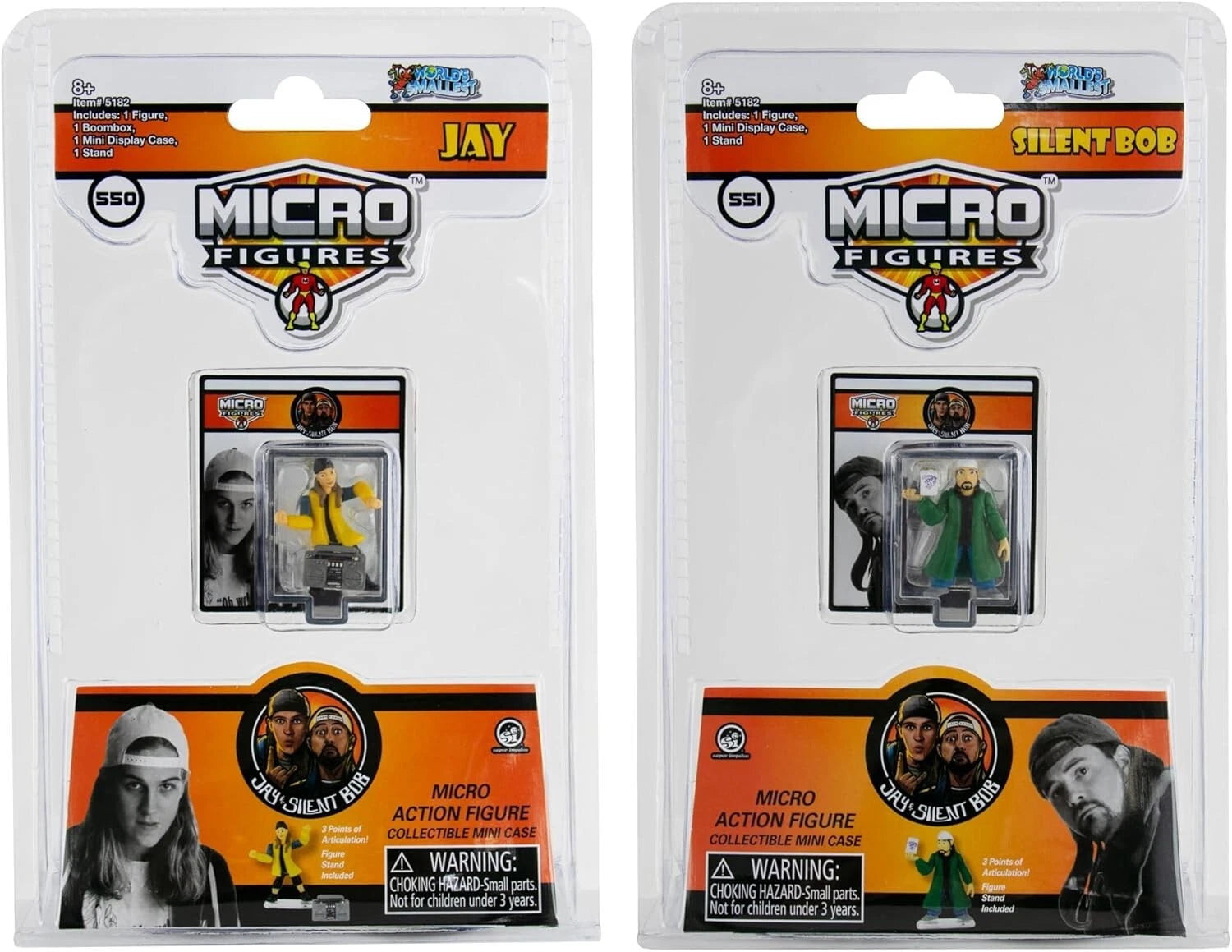 Bring the iconic duo to your World's Smallest collection with these incredibly detailed Jay and Silent Bob micro figures. Each figure stands 1.25 inches tall and has three points of articulation, allowing for posing and display. They come with their classic accessories, including Jay’s boombox and Silent Bob’s cup, all packed in a mini display case for collectors.
