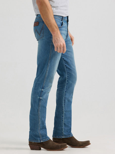 Wrangler® Retro® slim fit jeans nod to our history while introducing fits and washes suited for the modern cowboy. Designed with a closer fit and leg opening that still falls comfortably over boots, our men's Wrangler® straight leg slim fit jeans add extra style to the classic look you love. These jeans sit low on the waist and make it easy to show off your favorite belt buckle. That design detail is our Western heritage showing through, something that happens often with the Wrangler® Retro® collection.