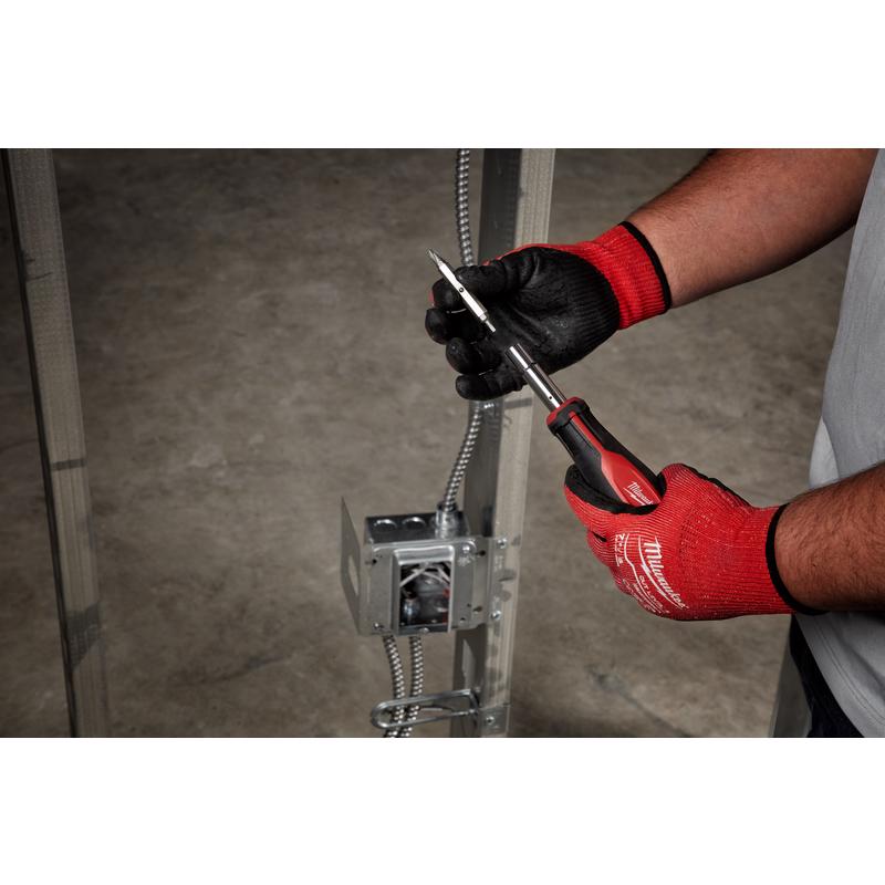 The Milwaukee 11-in-1 Multi-Tip Screwdriver with Square Drive Bits includes the 8 bits and 3 nut drivers most requested by professionals. The variety of screwdriver bit types and screwdriver nut drivers offer the versatility needed to complete any job. The bit prevents bit wear from hardened screws and extends bit life when fastening specialty screws found in electrical boxes, conduit couplers, outlets and other common jobsite fixtures. The multi-tip screwdriver is equipped with visible ID markings for quick tool identification.