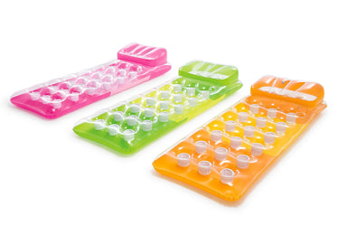 Enjoy relaxing and floating in the pool with the Intex® 18-Pocket Fashion Lounges. Designed with two-tone colors, two air chambers, and coil-beam construction. This sturdy lounger has an I-beam pillow for extra comfort while you float.