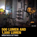 - High 1500 lumens and low 500 lumens brightness settings