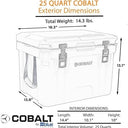 - The Cobalt 25 Quart cooler is the perfect versatile cooler solution. This is easily one of our most popular sizes of cooler and the Cobalt is easily the most affordable roto-molded option in this size on the market today. This is the perfect ice chest for camping, traveling to the beach, outdoor activities, family barbecues or just to keep your drinks cold on your front porch.