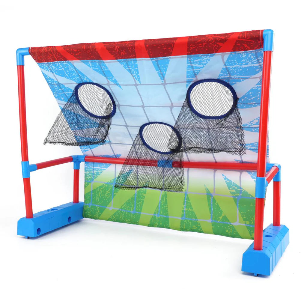 Experience a whole new adventure with this base as it moves side-to-side, making tossing your bags even more thrilling! And when you're ready to kick things up a notch, simply turn it around and aim for the moving goal using the included bean bags and soccer disc. Plus, with a motorized goal and easy-to-follow instructions, this set will provide endless fun. (Please note: 4 AA batteries are required, but not included)